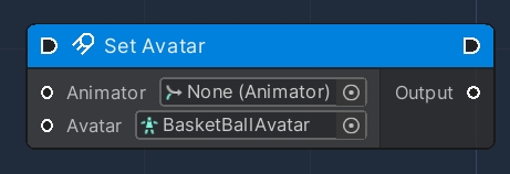 This node is used to modify an existing Animator Component, by setting a new Avatar.