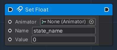This node is used to set the value of the given float parameter, to cause transitions between Animator states.
