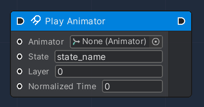 The normalizedTime parameter varies between 0 and 1, representing the starting point of the Play Animator.