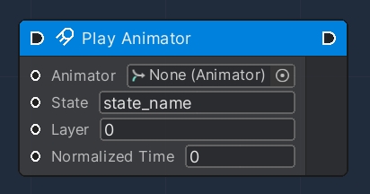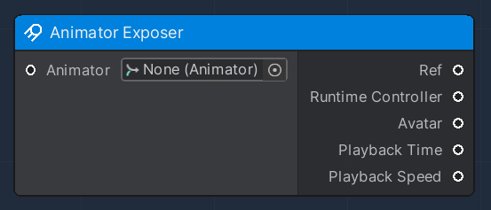 This node is used to expose the parameters and attributes of a given input Unity Animator component, which are: