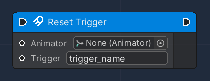 This node is used to reset the value of an animation trigger, in case a Trigger parameter could still be active.
