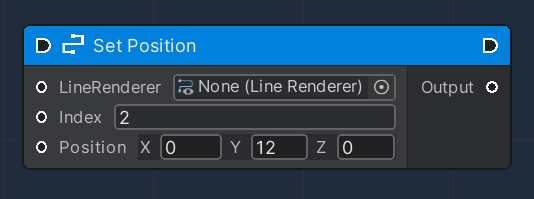 This node is used to modify an existing Line Renderer Component, by editing the Position value of one of its vertices.