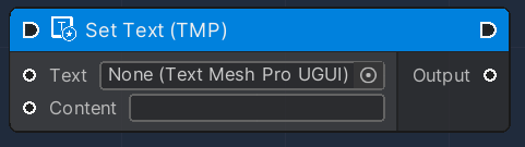 A Text (TMP) OverNode is used to display text in the scene. The difference with the Text node is that to use this one the User needs to install the TextMeshPro Unity Plugin.