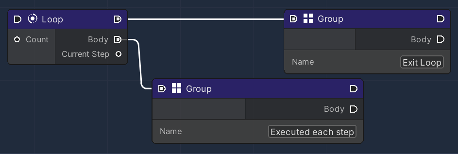The Count parameter is used to define how many iterations this Node should execute its Body. Inside the body resides all the logic of the loop, described as a collection of joined Nodes.