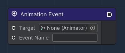 This node is used within a visual scripting framework to register an event that is triggered by an animation. The event is specified by a name, and when that particular animation event is fired, it triggers the node, executing the attached nodes.