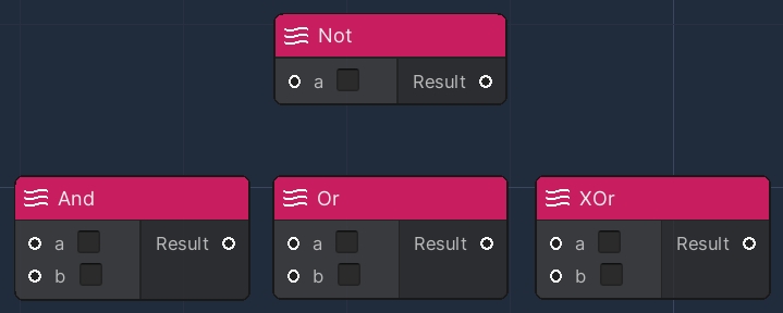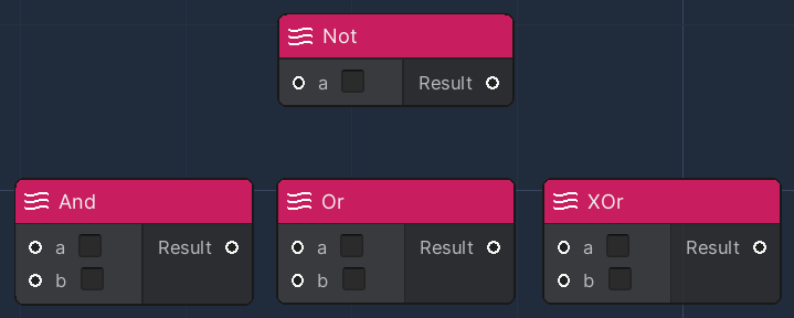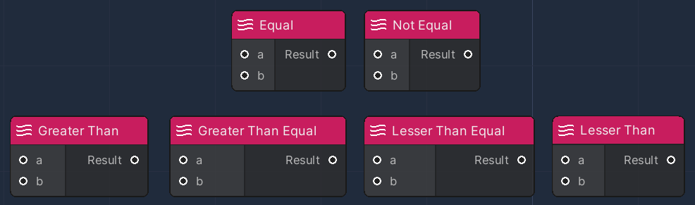 Each of these nodes accept two parameters as input, and provide a boolean output.