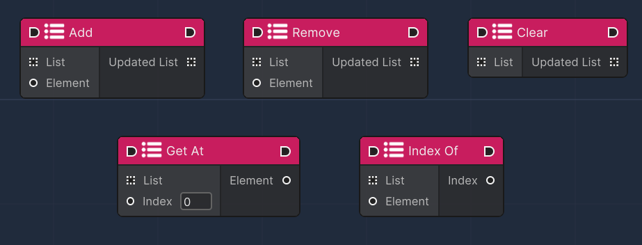 These nodes are responsible for implementing common list operations that require Flow Nodes to operate: