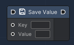 The "Save Value" node is utilized to store a key-value pair locally. It receives a key and a value as inputs and attempts to save this data. If successful, the data is stored and can be retrieved later, even after the application has been closed and reopened. This node is critical for creating save systems, storing user preferences, or keeping track of game states.