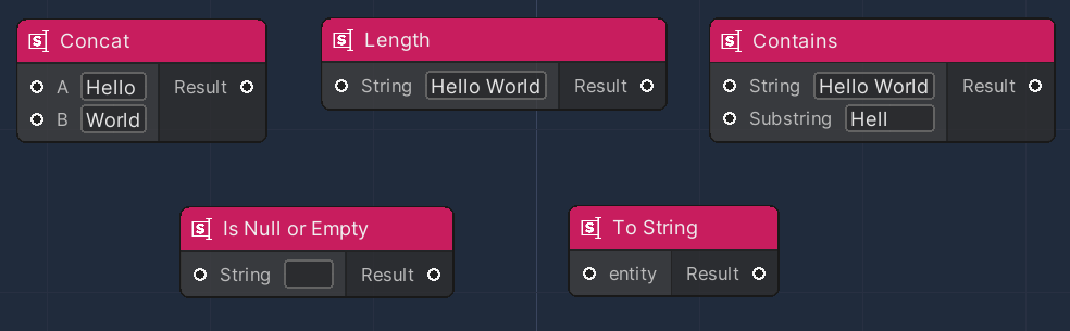 The String nodes provide several operations, specifically used for handling strings.