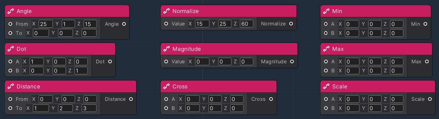 This collection of Nodes are responsible for performing basic useful operations with vectors.