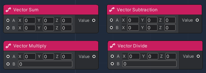 This collection of Nodes allows for simple mathematical operations between vectors.