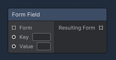 The "Form Field" node is utilized to construct or modify form data within a web request. It allows for the addition or updating of key-value pairs in a form, which can be sent as part of an HTTP POST request. This node can be used standalone to create a single form field or chained with other "Form Field" nodes to construct more complex forms. It is particularly useful when combined with the "Web Request" node to dynamically build the body of an HTTP request.