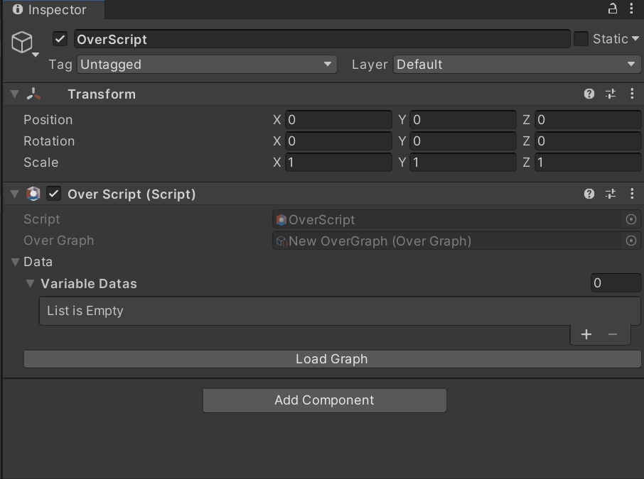 To add an OverGraph to this script, the User can either create a new OverGraph and drag and drop it in the OverGraph field, or by pressing the Create New Script button. This will automatically create and assign a new OverGraph.