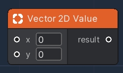 This Data OverNode is used to represent 2 dimensional Vectors values inside the Graph. Like the Unity3D Vector2, its properties are:
