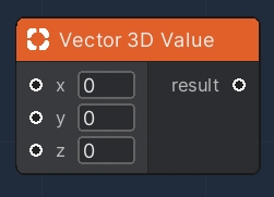 This Data OverNode is used to represent 3D Vectors values inside the Graph. Like the Unity3D Vector3, its properties are: