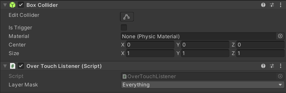 In order for the Node system to communicate to the Unity Runtime environment, a OverTouchListener component must be associated to the Target GameObject.