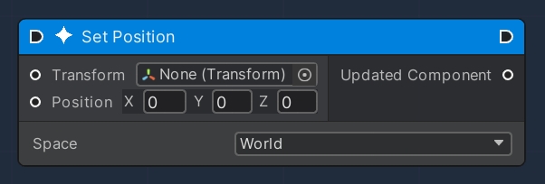 Flow Nodes: provided with Flow Ports, they are used to link the node directly to the Unity runtime execution flow and propagate it further to the following nodes