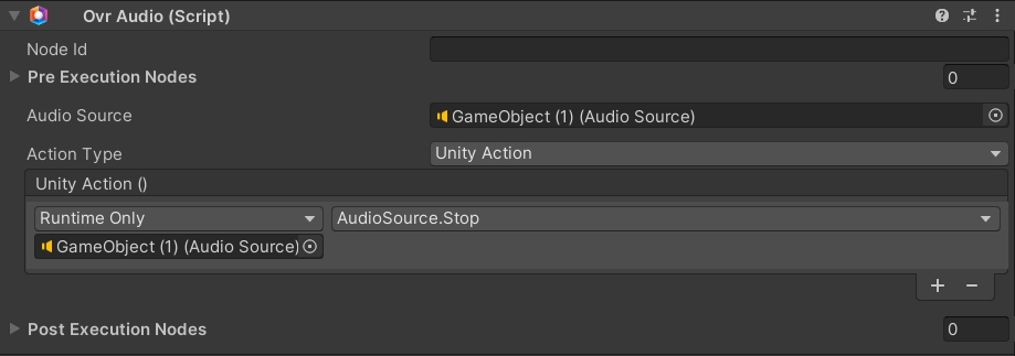 The OVER SDK provides several ways to interact with Unity AudioSource Component. A list can be found in OvrAudioActionType.