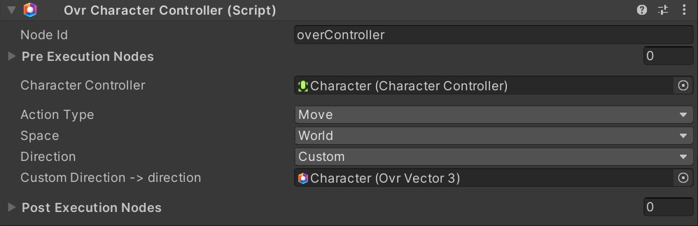This Node is used to manage the most common interactions with the Unity CharacterController Component.