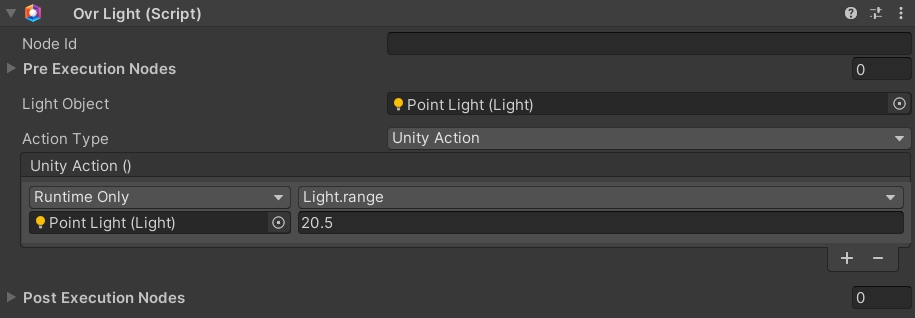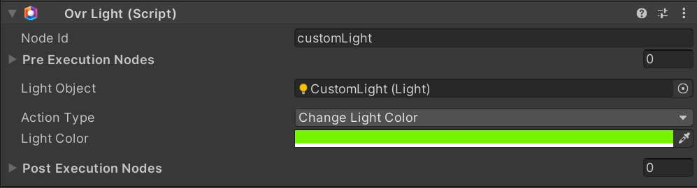 The OVER SDK provides several ways to interact with Unity Light Component. A list can be found in OvrLightActionType.