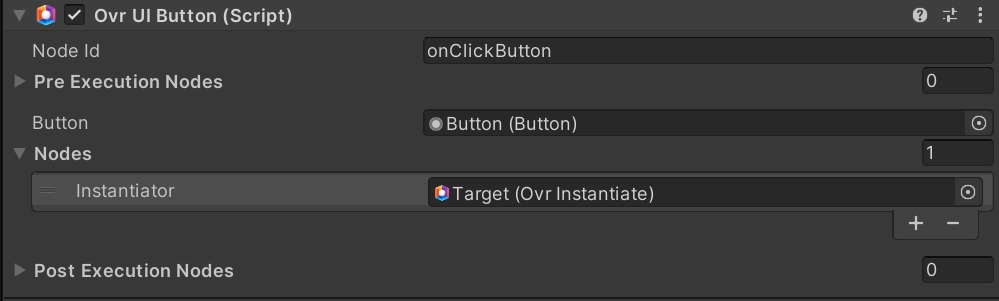 This trigger must be applied to a UI button. It causes the assigned OvrNode or list of OvrNodes to be executed when the button is clicked.