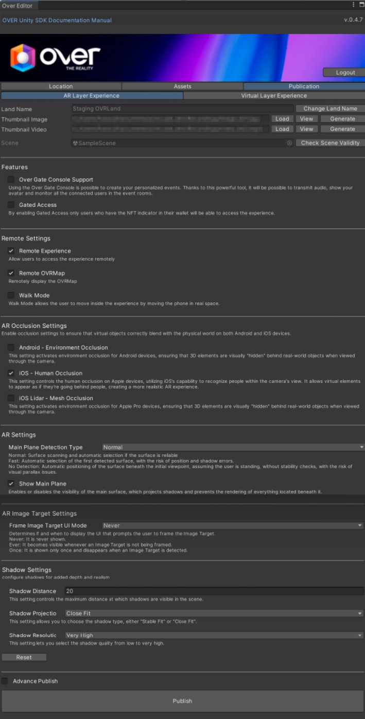 The OVER SDK is optimize to publish the current open scene, there must be only one OvrAsset present in the scene and no other object as root. The only other assets that can be present are the map and the land borders because they will automatically remove upon upload. <br>
