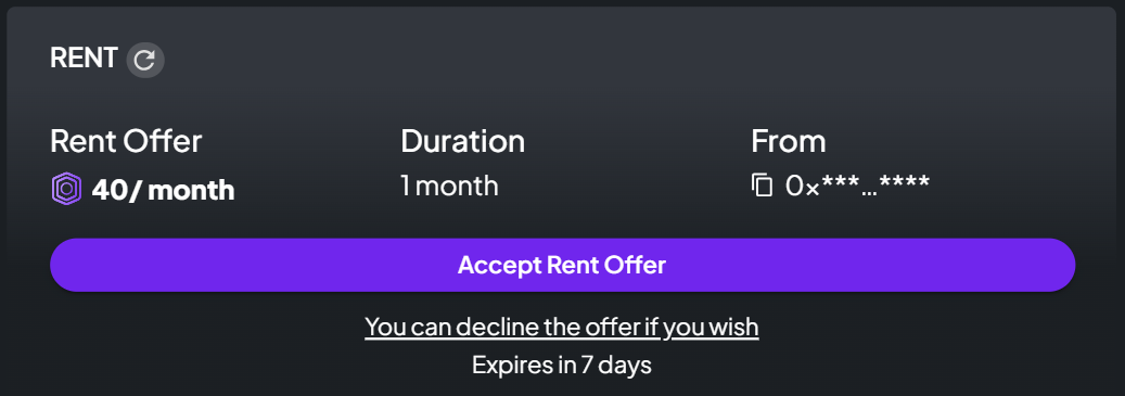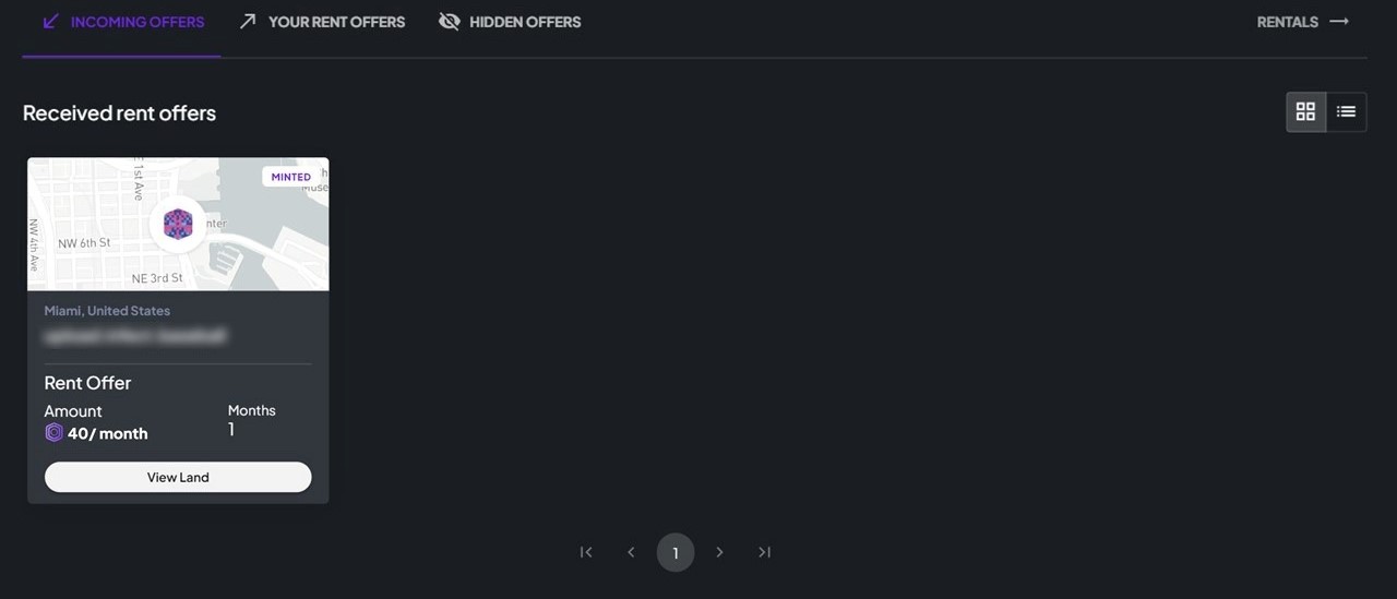 To review your rental offers, please visit Renting Offers and navigate to the "Incoming Offers" section. Here, you can access a list of lands with pending rental requests.